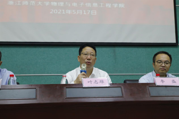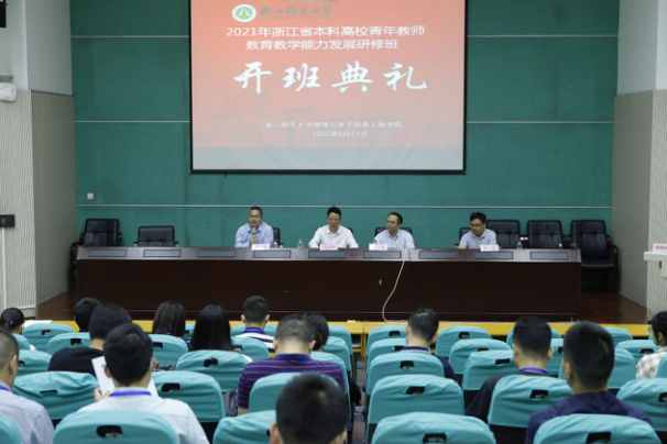 5月17日上午,由浙江省高等学校师资培训中心主办、浙江师范大学物理与电子信息工程学院承办的“2021年浙江省本科高校青年教师教育教学能力发展研修班”开班仪式在我校物电学院20幢一楼报告厅举行。开班典礼由浙江师范大学物理与电子信息工程学院成教办主任徐贤老师主持,浙江省高师培训中心常务副主任、浙江师范大学继续教育管理处处长叶志雄,浙江师范大学物理与电子信息工程学院院长李盛教授,浙江师范大学物理与电子信息工程学院党委书记周军强,以及来自全省24所高校的60余位青年教师出席了本次活动。