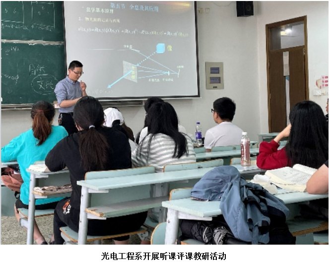 光电工程系安排了由施逸乐老师主讲的《物理光学》公开课。公开课后,光电工程系召开了课程思政与课程建设研讨会,会议由系主任钱义先主持。研讨会就课程思政、专业认证和人才培养方案修订等主题开展研讨交流。老师们一致认为青年教师需要加强听课与教学方面的学习,多听课模拟学习,从优秀教师中汲取经验,多参加各级青年教师教学大赛,以及申报各类教学教改项目,不断磨练自己,迅速提升教学水平,适应教学需求。通过本次教学研讨会,参会教师认为要在课堂上自然融入思政元素,实现教书育人的本质,要不断自我学习和创新教学方法,形成自己的风格和特色,成为学生心目中的好老师。