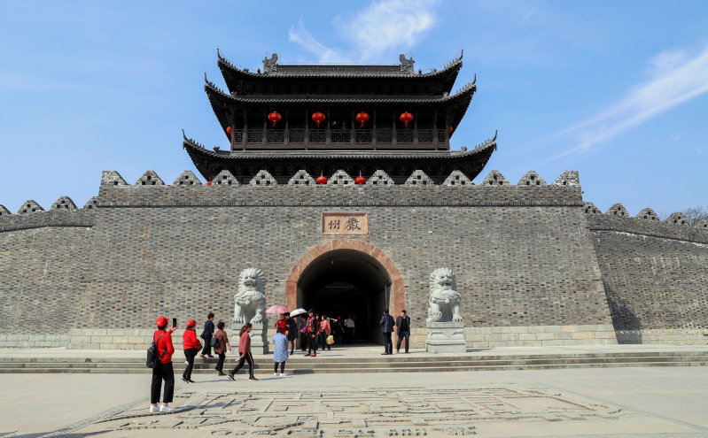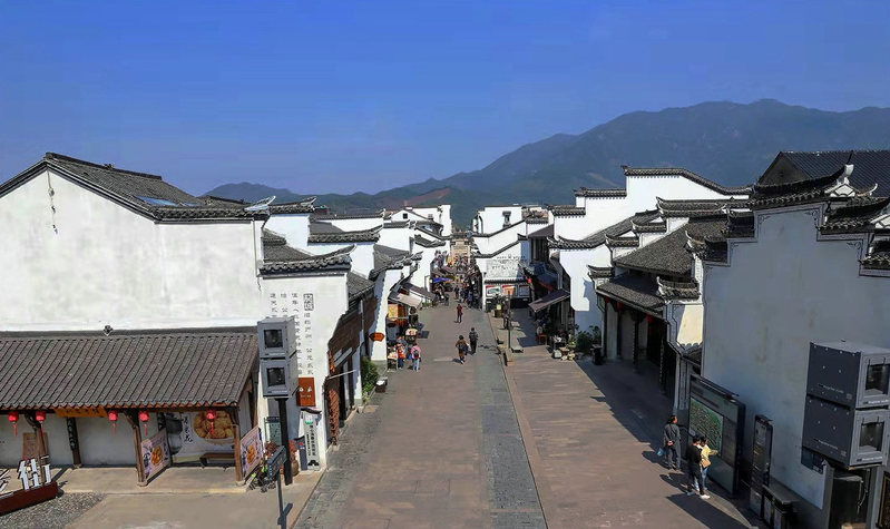 驱车1小时,一行人到达了梅城古镇,映入眼帘的是高大雄伟的古楼城墙和波光粼粼的新安江,大家沿着江堤欣赏江景,一路来到古城的正门口,进入古城便是里外完全不同的感觉,高大矗立的牌坊、古朴特色的街市,尽显一片热闹繁华的景象。
