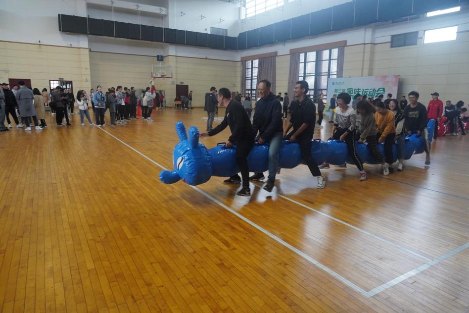 与此同时,我院老师参加了学校举办的教师趣味运动会。此次教师趣味运动会的项目包括“足球射门”,“摸石过河”,“飞盘点球”和“骑毛毛虫”。我院教师积极地参与到比赛中,相互协作,感受其带来的快乐。