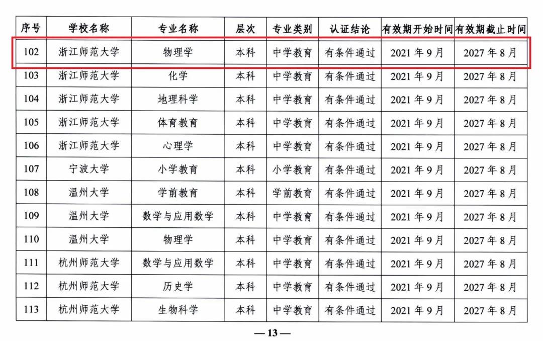 近日,教育部公布2021年通过普通高等学校师范类专业认证名单,浙师物电学院物理学专业通过师范类专业认证。