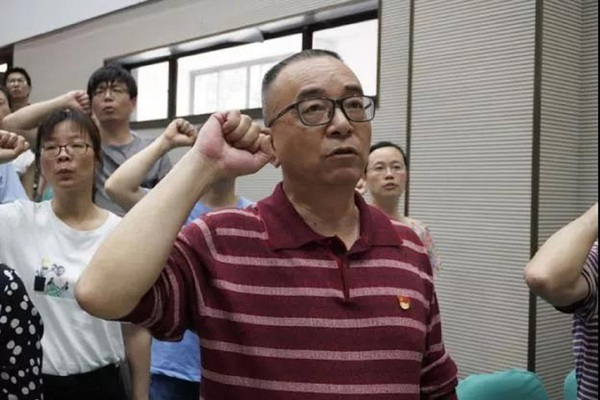 阮春峰老师带领全体师生面向党旗庄严宣誓,他们表示会时刻牢记誓词,不断以誓言磨砺自身,严于律己,锐意进取,勇于承担起身为党员的责任。