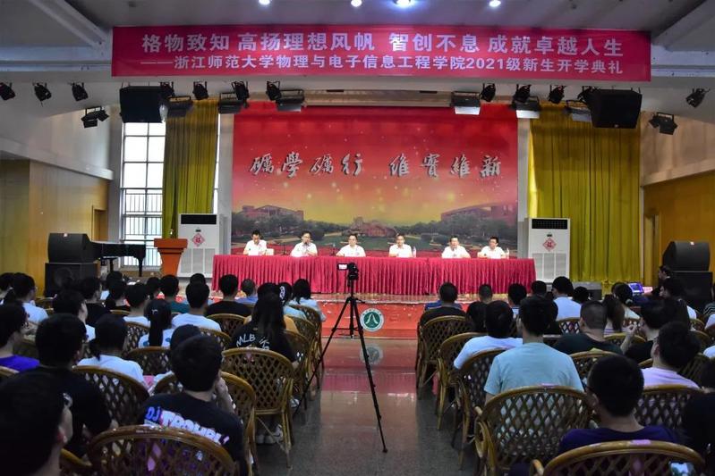 庄严的校徽佩戴仪式开始。老师们为新生代表佩戴校徽,代表着2021级新生成为浙师物电的一员。