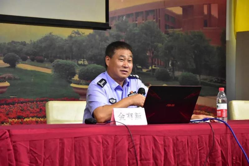 本次安全教育讲座涵盖了电信网络诈骗防范宣传教育、禁毒教育、交通安全教育等内容,邀请到了金华市婺城新狮派出所所长金有新、浙师大保卫处综合技防科科长姚涛来院宣讲。