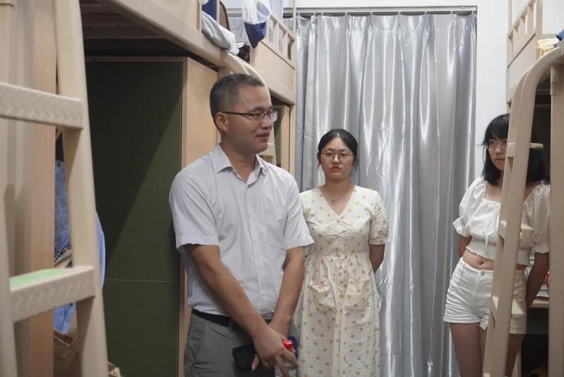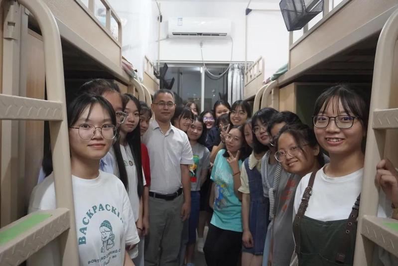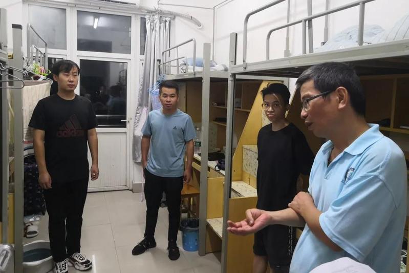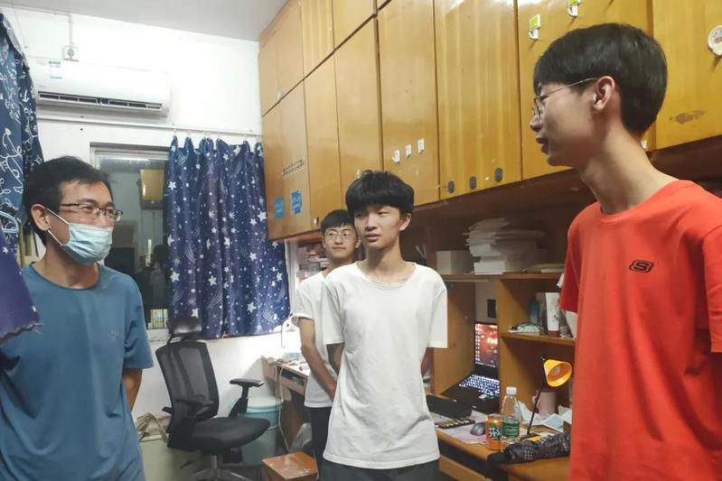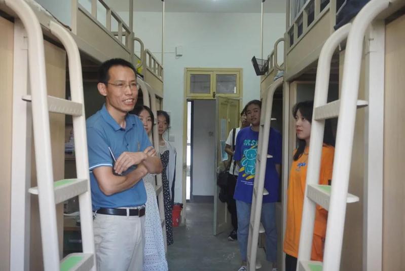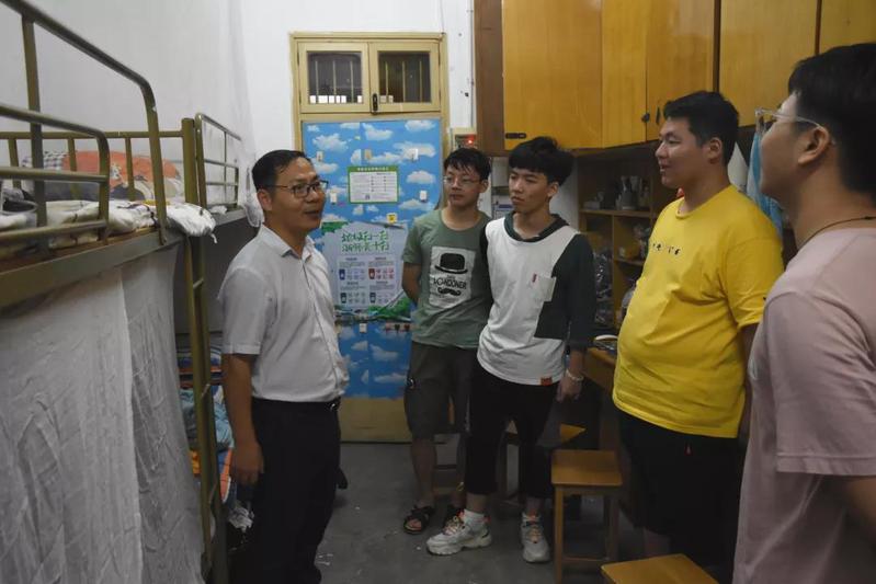 院党委副书记阮春峰走访了杏园男寝。首先,阮春峰副书记邀请每位新生介绍了自己的家乡,关心同学们住的是否习惯并希望同学们能互相关照。他着重地询问了同学们是否有考研的打算并表示将来无论是选择考研还是找工作都要坚持努力,夯实自己的基础学科。阮春峰副书记还鼓励同学们在大学四年期间多出门运动,不要总闷在寝室并告诫同学们一定要少打游戏。