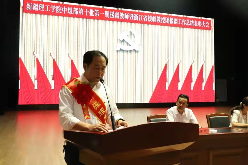 习近平总书记指出,“做好新疆工作是全党全国的大事”。2018年3月从浙江省属27所高校选派了38名具有副高以上职称的专任教师组成浙江省援疆教授团到学校工作3年,这个团被称为“38团”,我院方允樟教授响应时代号召,成为了这38名援疆教师之一,并担任了“38团”团长,奔赴新疆大学科学技术学院阿克苏校区援疆,自此开始了为期3年的援疆工作。