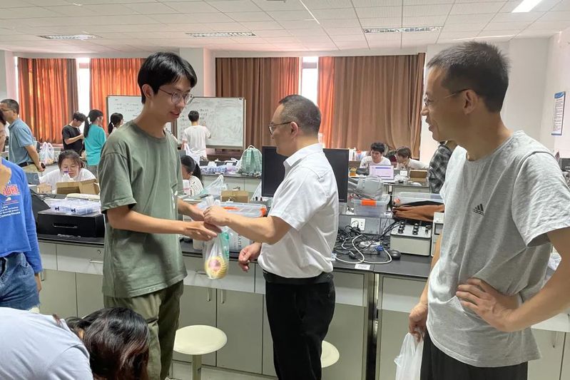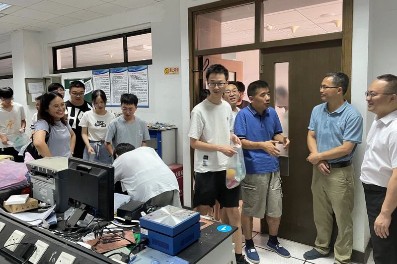7月21日下午,物电学院院长李盛,党委书记周军强,党委副书记阮春峰,副院长黄仕华,副院长李慧军,院团委书记兼学工办主任阮敏尔,学工办辅导员陈锐等一行前往学院考研教室、研究生工作室、实验室看望暑期备战考研和竞赛、做实验的同学,为留校学生送去关怀和慰问。