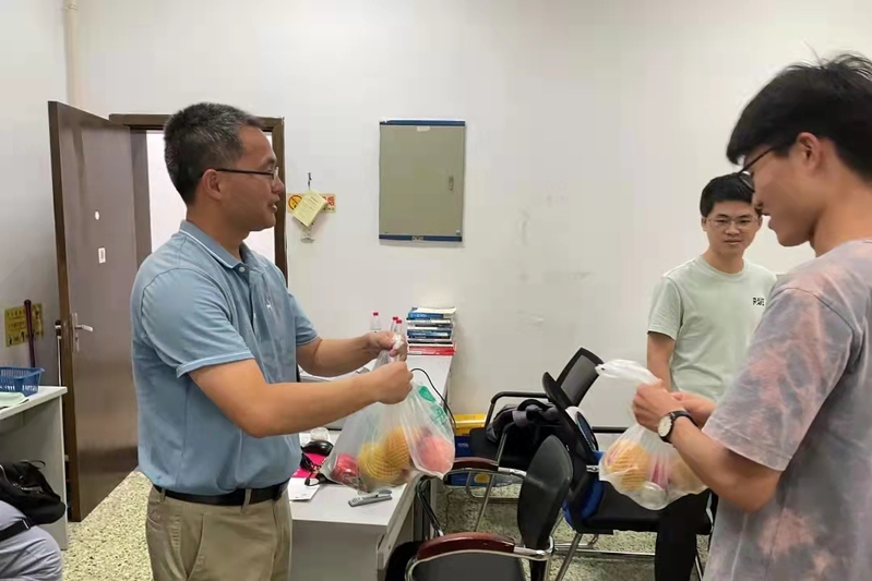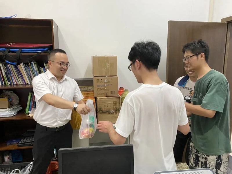 老师们询问了同学们近期的学习、生活情况,对他们能在这炎热的天气中继续留在学校备战考研、钻研学术、准备竞赛表示赞扬,还叮嘱同学们在学习之余也要注意身体,劳逸结合,合理安排时间,遇到困难与老师多交流沟通,以积极良好的心态备战,用饱满的信心应考,并为同学送上水果和凉茶,希望这份小小的心意能够让大家感受到学院的关怀。