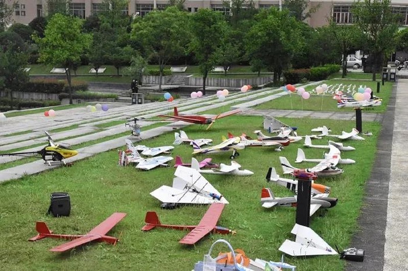 而后,孩子们去往文化广场观看航模表演节目。火箭助推遥控滑翔机一飞冲天、刺激的空战机撞气球、灵活的冲浪者泡沫飞机,一架架炫目的飞机、一场场精彩的表演引得全场沸腾、欢呼不断。“五四三二一!”在欢乐的倒数声中,遥控纸飞机模型成功飞天,喷射出彩色的烟雾,在天空中盘旋,引来了一阵兴奋的呐喊。随后,四台带着丝带的手掷模型滑翔机在遥控下飞天,侧翻、转体,这些高难度动作激发了孩子们对于航空科技极大的好奇和热情。