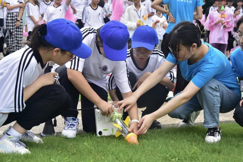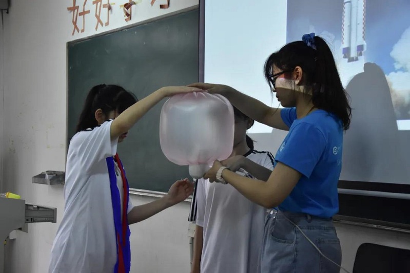“哇!它飞的好高!”“到我啦!到我啦!”文化广场上,一阵阵欢呼和呐喊不断吸引着路过的同学和老师们的好奇。7月8日至10日,一群朝气蓬勃的学生踏进浙师大的校园,参与浙江师范大学物电学院举行的“航天少年科技体验营”活动,此活动的每一个项目都由学院各专业老师亲自把关、指导学生打磨讲稿、加强学生体验过程,旨在为浙江师范大学婺州外国语学校的学生更好地了解航天、航空知识,逐梦航天理想。