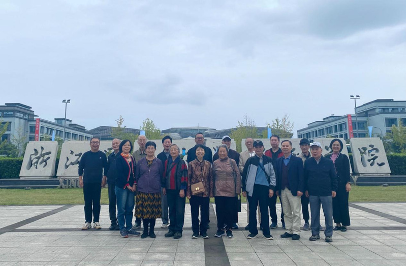 午后,一行人来到浙江师范大学行知学院,先后参观了学院党史文化长廊、党群服务中心、图书馆、院史馆、艺术展厅等地。行知学院党委书记刘星喜向来访老同志介绍行知学院发展历史和未来规划,同时向各位老师致以节日的问候。在行知学院图书馆报告厅,老师们道往事、叙旧情,谈笑风生。