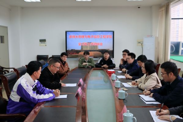 11月9日下午,学院副院长寇建龙、物理系副主任陈赵江和教务办孔胜涛老师一行在实习带队老师陈莉萍的陪同下前往武义一中开展教育实习检查工作,看望实习生。寇建龙副院长一行与武义一中郑伟飞副校长进行了深入交流,并组织实习生开展座谈会。