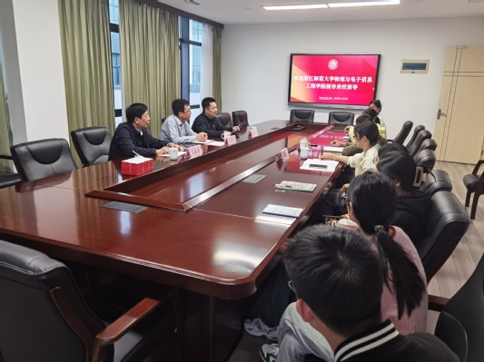 11月10日下午,学院党委副书记阮敏尔、院长助理兼物理系主任王晨和教务办孔胜涛老师一行在实习带队老师陈艳燕的陪同下前往浦江中学开展教育实习检查工作,与浦江中学副校长鲍振宇、物理教学指导老师王勇进行了深入交流,并与实习生们座谈。