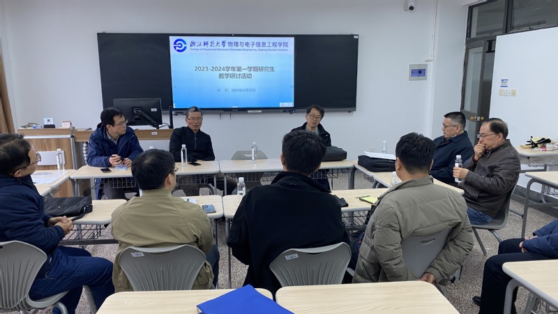 随后,学院以“如何有效提高物电学院研究生课堂教学质量”为主题在22幢418教室开展研讨。针对研究生课堂教学现状,与会教师各抒己见。大家充分肯定了王老师教学的课堂感染力,特别是王老师讲课逻辑清晰、教学内容丰富。与会教师们就研究生小班教学如何开展、研究生课程设置以及研究生人才培养等方面进行了热烈的讨论,提出了一系列建设性的意见和建议。