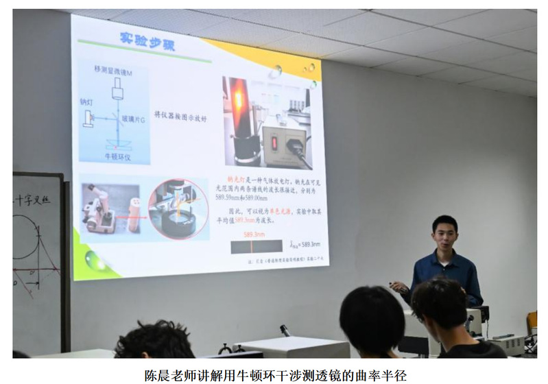 陈晨老师在《大学物理实验B》课程中,通过肥皂泡的干涉现象引入,鼓励同学们仔细观察生活中的物理现象,他详细讲解了牛顿环的科学背景及其形成原理,通过介绍光的波动理论的发展历史,强调了尊重客观实验事实的重要性,并倡导同学们以务实、严谨、求真的态度参与物理学习。在实验操作指导中,陈老师系统地讲解了操作流程,并针对实验中的挤压问题修正了测量公式,他介绍了牛顿环在科技领域的应用价值,激励同学们做生活的有心人,善于运用所学知识服务于生活,并积极投身于国家科技发展的伟大事业。