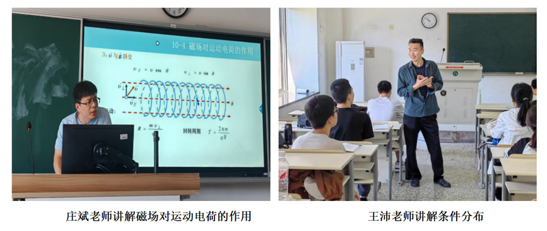 庄斌老师在《稳恒磁场》的授课中,从磁场的基本概念出发,逐步引入安培环路定律,详细阐述了磁场对载流导线和运动电荷的作用。他巧妙地将微观与宏观关系相联系,通过画图将抽象理论具象化,加深了同学们对磁场知识的理解,引导学生要将个人的理想与国家命运融合在一起,为社会的发展贡献自己的力量。王沛老师的《概率与数理统计》课程,在学习新知识的同时回顾旧知识,他引用生活中的射箭问题激发学生兴趣,帮助学生更好地理解条件分布的知识点与应用。王老师的板书清晰,课堂生动,不断提问鼓励学生带着批判性眼光学习,敢于思考、质疑,培养学生学习的主动性和独立思考能力。