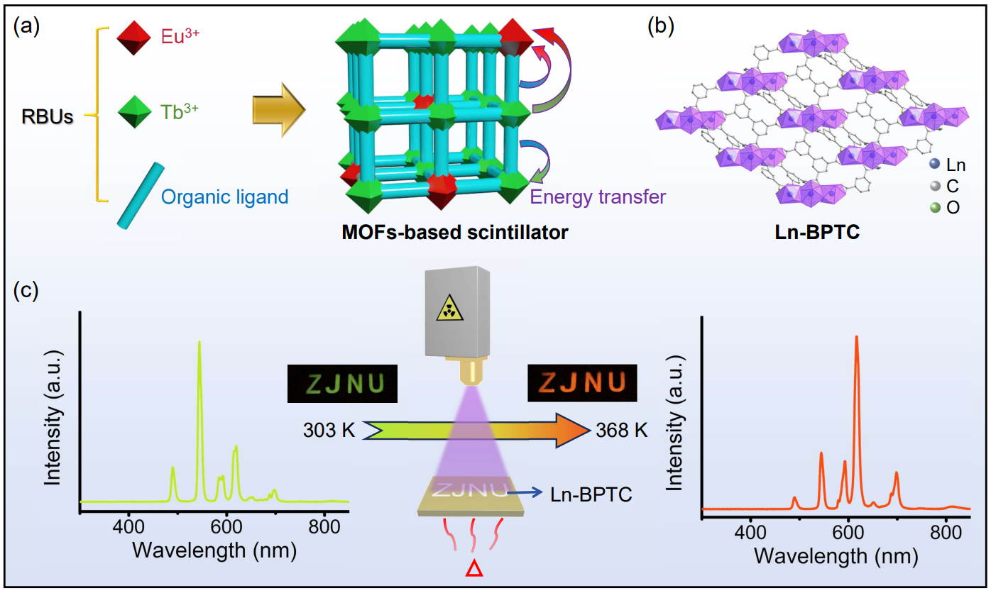 Ln-MOFs闪烁体的设计思路与热响应闪烁性能示意图