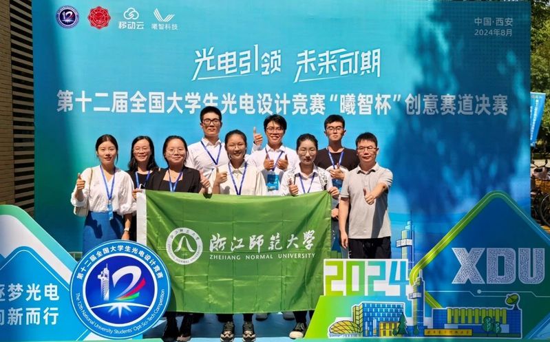 据悉,本届创意赛道以“光电引领、未来可期”为主题,吸引了来自全国392所高校的4044支队伍报名参加,参赛高校数、参赛队伍规模均创历史新高。经过前期华北、东北、西北、西南、中部、东南和东部七个分赛区选拔,共有148所高校的370支队伍入围国赛,其中来自90所高校的186支队伍推荐参加创意赛道现场决赛。经区赛推荐、现场展示答辩、评审专家提问等竞赛环节,本届大赛共产生一等奖56项、二等奖128项、三等奖184项。物电学子在此前7月12日至14日的东部区(江浙鲁沪)决赛中,表现优异,获一等奖5项,二等奖5项,三等奖3项,4个项目入围国赛,浙师大获评东部区赛“优秀组织奖”。