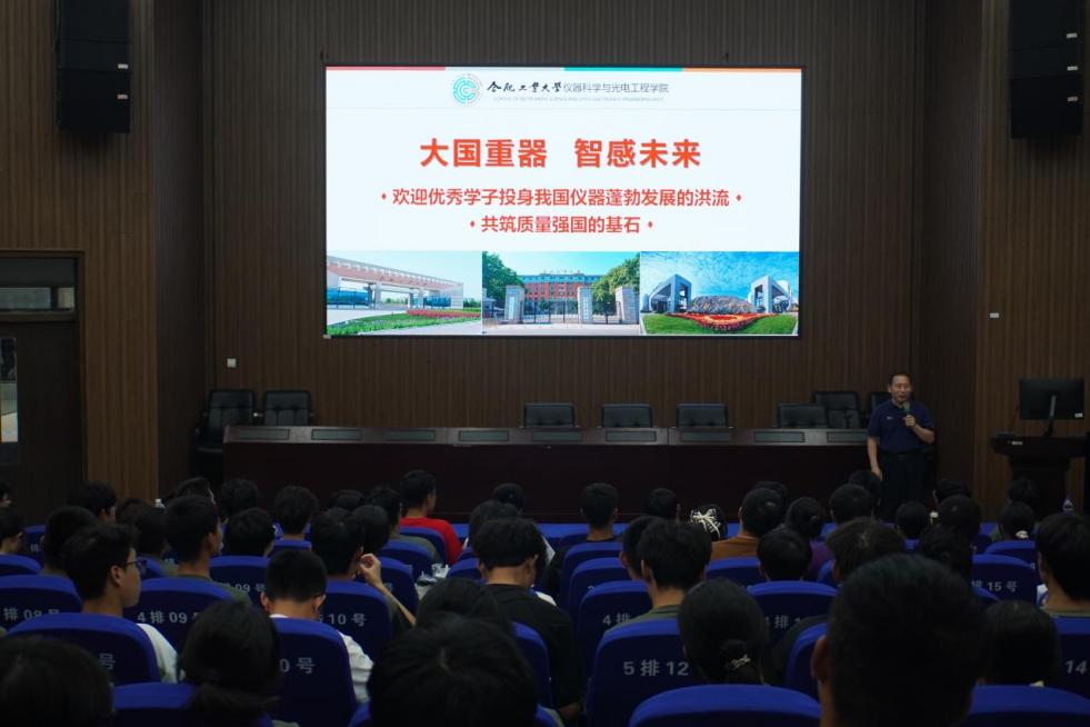 讲座中,夏教授从电子信息类专业内涵与新发展领域出发,以计时器、望远镜、生物医学工程以及智能制造为例,展现仪器科技的广泛应用。他指出,当前我国在仪器领域仍面临多项“卡脖子”难题,鼓励同学们跳出高中阶段的认知局限,深入了解行业前沿,精于学业,不断探索,为推动高端精密仪器国产化、精密测量与加工一体化技术的突破贡献力量。夏教授还以人形机器人为实例,分析其优势与瓶颈,激励同学们夯实专业基础,勇于探索未知。在总结环节,夏教授结合电子信息前沿趋势,分享了在仪器类新工科人才培养与科学研究方法上的创新改革思路,系统梳理了电子信息类专业的知识体系、能力要求与时代使命,勉励青年学子树立远大目标,为建设仪器强国而努力读书。