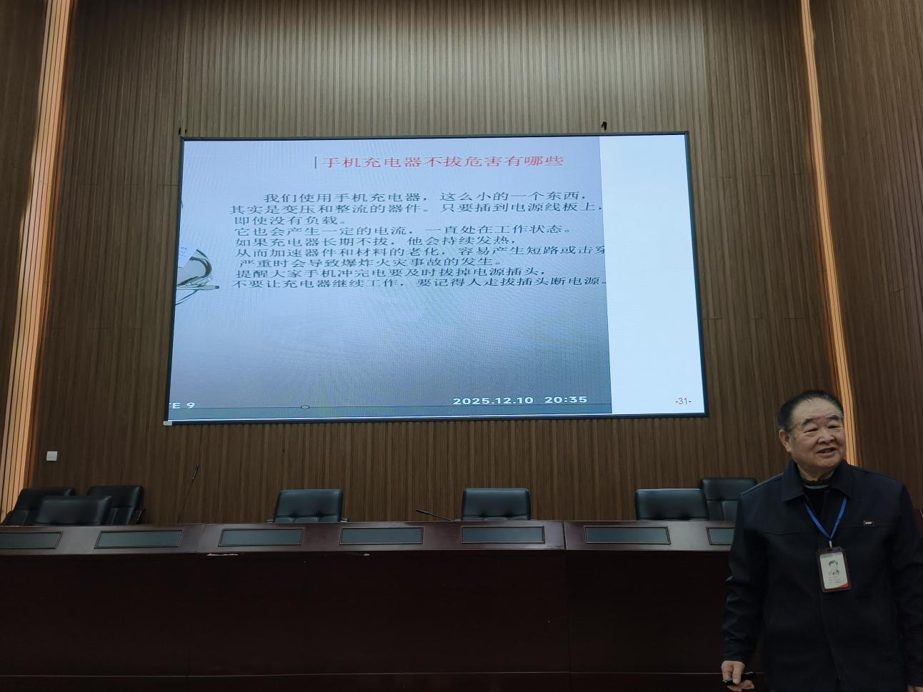 罗鸿源老师对新型隐患进行讲解,强调手机充电器不拔、电源插座不关闭会产生的危害